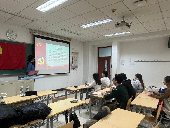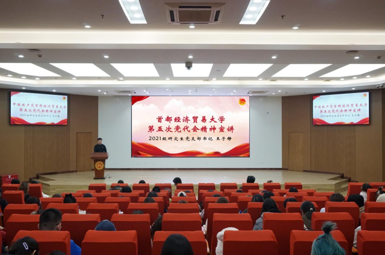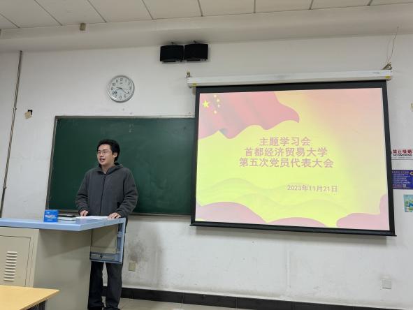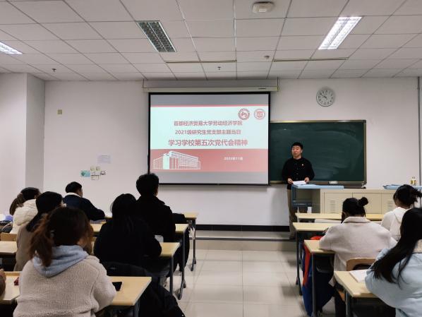 博士生党支部副书记安贤娟在主题党日活动中表示,非常荣幸能够作为一名学生代表参加学校第五次党员代表大会,大会全面回顾和总结就了学校第四次党代会以来的工作,同时也系统的提出了学校接下来的发展方向。通过参加这次会议我深刻感受到了学校党委在过去带领全校师生在政治建设、人才培养、科研创新、学校教育等方面取得的新成就,同时也对于学校未来奋力开窗高质量发展新局面,建成特色鲜明的国内一流国际知名高水平研究型财经大学有充满信心。