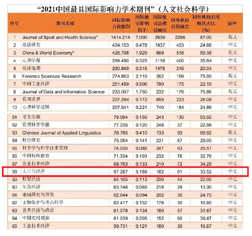 在近日发布的2021年中国学术期刊国际影响力指数排名中,动画疯 期刊《人口与经济》国际影响力指数进入TOP5%行列,荣获“2021年中国最具国际影响力学术期刊”奖项。这是《人口与经济》继去年入选以来,再一次获得“中国最具国际影响力学术期刊”的荣誉称号,表明《人口与经济》期刊国际影响力指数排名稳定,表现良好,也表明《人口与经济》一直以来在国际上拥有良好的学术影响力。