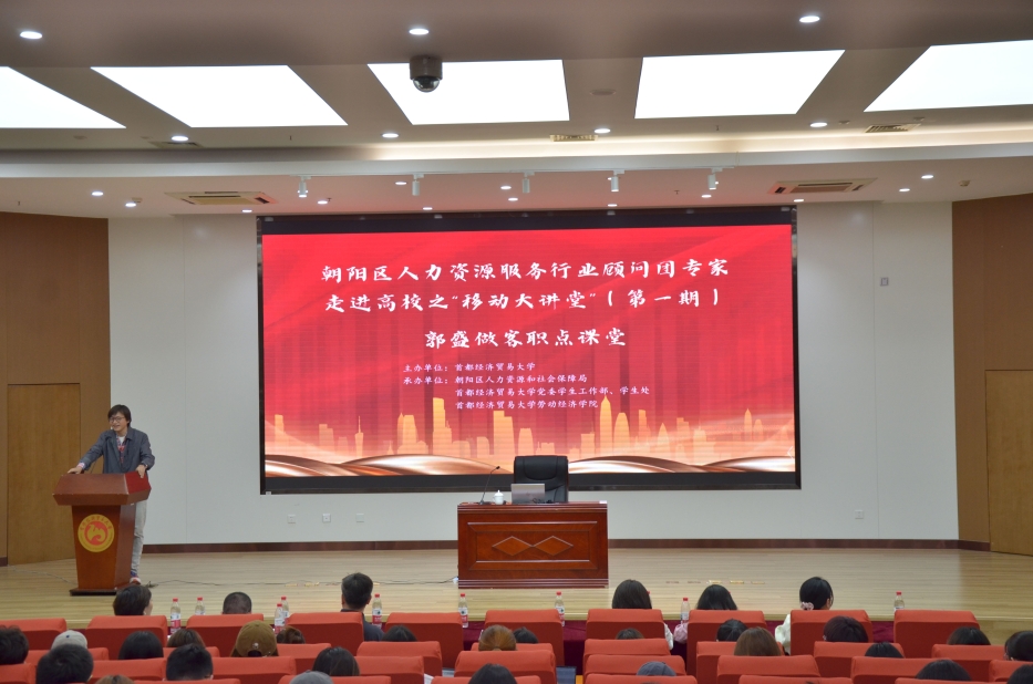 座谈会后,在动画疯 学术报告厅开展朝阳区人力资源服务行业顾问团专家走进高校之“移动大讲堂”(第一期)暨首经贸职点课堂,由郭盛担任主讲,他围绕人工智能技术发展趋势及其对个人生活和职业发展的影响,为同学们提供许多颇具价值的观点和建议。