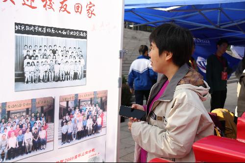 上午八时许,学院志愿者们来到了经贸广场,为迎接返校友做好准备工作。学院为每一位校友准备了印有“劳经”字样的帆布包,为每一位校友用拍立得拍下个人照片,并赠送了学校校徽、学校校友会和学院宣传册等纪念品。校友们在“欢迎校友回家”的签到板上留下自己的姓名,在“合影展板”上寻找自己在校生活的风采,在“我爱劳经”的文字景观前合影留念,在“告白祖国”的表白墙上留念对祖国母亲最真挚的祝愿。每个人脸上都洋溢着幸福的笑容,空气中弥漫着久别重逢的喜悦。