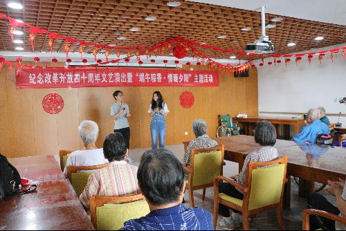 6月15日上午,学院专职辅导员耿绍宝带领学生党支部20余名党员代表前往北京右安门医院嘉祥敬老院开展“纪念改革开放四十周年文艺演出暨‘端午粽香·情暖夕阳’”主题活动,学生党员们与老人们一起唱红歌,在歌声中感受祖国改革开放四十年来取得的辉煌成就;一起包粽子,在动手实践中传承民族优秀传统文化。