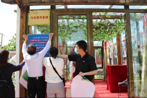 学生代表张富春说:今天,我有幸参观了北京市马恩公园红色教育基地,和范强鸣老师近距离交流。我们参与了马克思“葡萄园”的建设,也和南开大学外国语学院的同学们一起聆听了范老师多年来的经验分享,我们都被老师的精神所打动,接受了一次深刻的思想洗礼。马恩公园位于昌平区一处村庄中,初见时其貌不扬,走进内部细看才觉别有洞天。范老师多年来辛苦经营,将一块杂草丛生的荒地变作了马恩思想驻足的圣地;人民至上的标语仍历历在目,展柜中各种版本的《共产党宣言》震撼了在场的每一位党员同学。我想,一个人如果有着如范老师一般坚定的信仰,他的思想必定是鲜活而充满力量的,他的生活也必然是充实且快乐的。