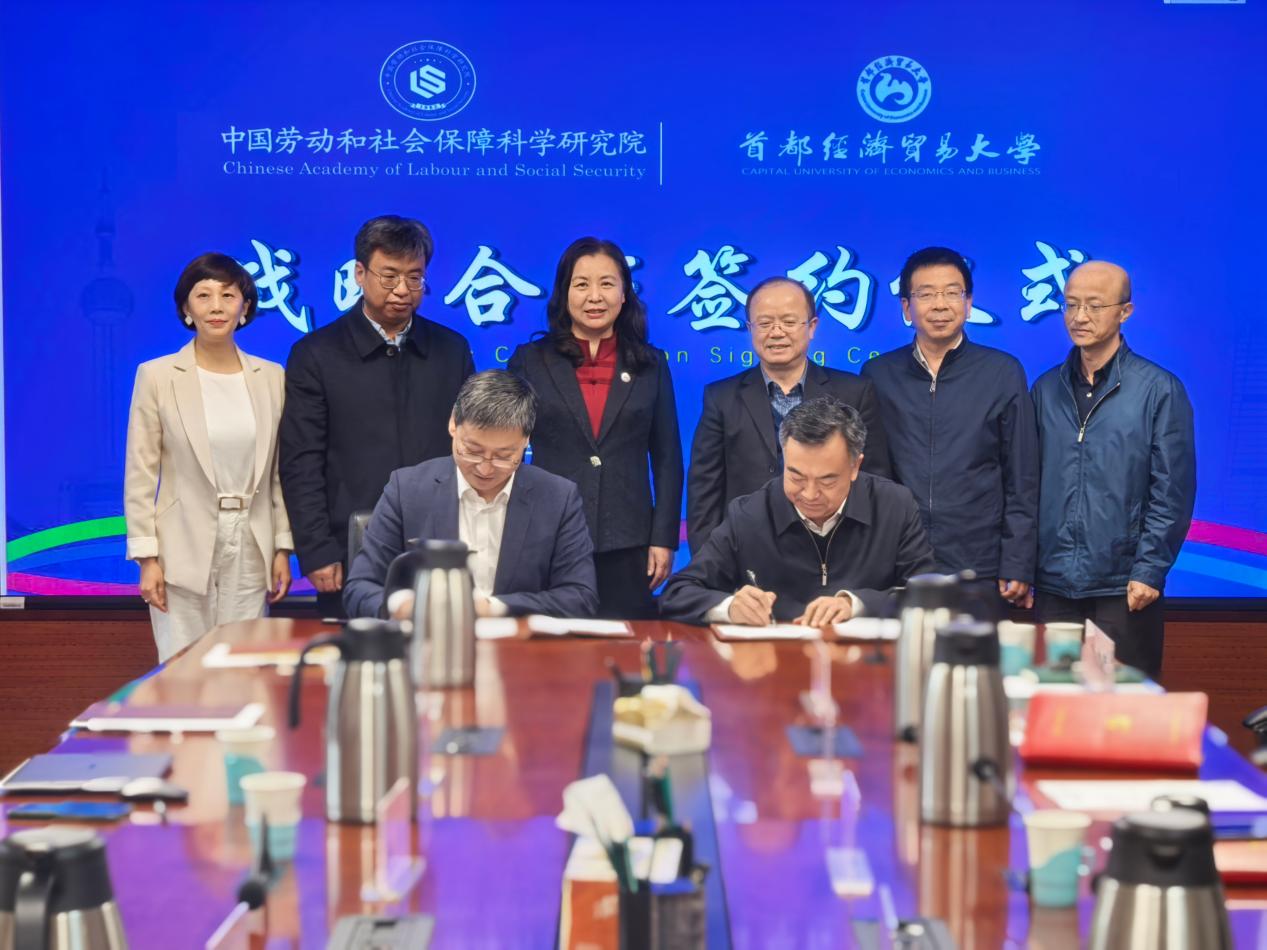 党委副书记、校长吴卫星,党委副书记徐芳,中国劳动和社会保障科学研究院院长莫荣,劳科院副院长刘军胜出席签约座谈会。