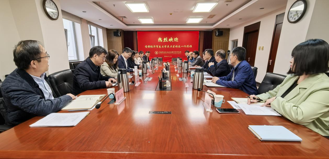莫荣对首经贸一行的到来表示欢迎,并介绍了劳科院的总体发展、科研优势及高端智库建设情况。他表示,劳科院与首经贸劳经学院有着很深的学科渊源。劳科院坚持开门办院、开拓发展的理念,以建设劳动和社会保障领域国家高端智库为目标,期待与首经贸合作,共同为人力资源社会保障事业高质量发展作出更大的贡献。