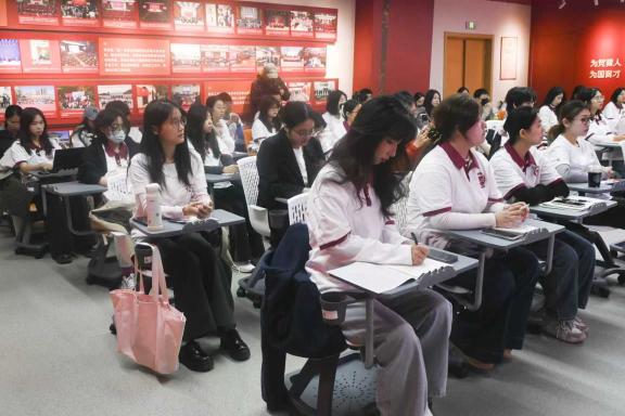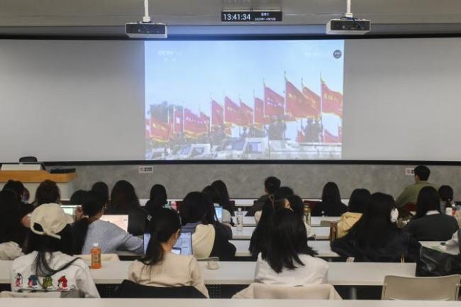 11月5日,分党校于慎思楼401智慧教室组织培训班学员集中观看了中央广播电视总台推出的胜利日阅兵专题节目《必胜》,了解“中国人民抗日战争暨世界反法西斯战争胜利80周年纪念活动”的幕后故事。节目中,众多受阅官兵与学员们相仿的年龄及其展现出的精神风貌,为同学们树立了鲜明榜样,激励大家从中汲取奋进力量,传承勇毅坚定的优良作风。