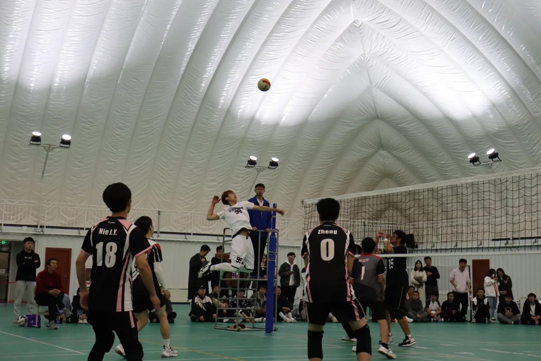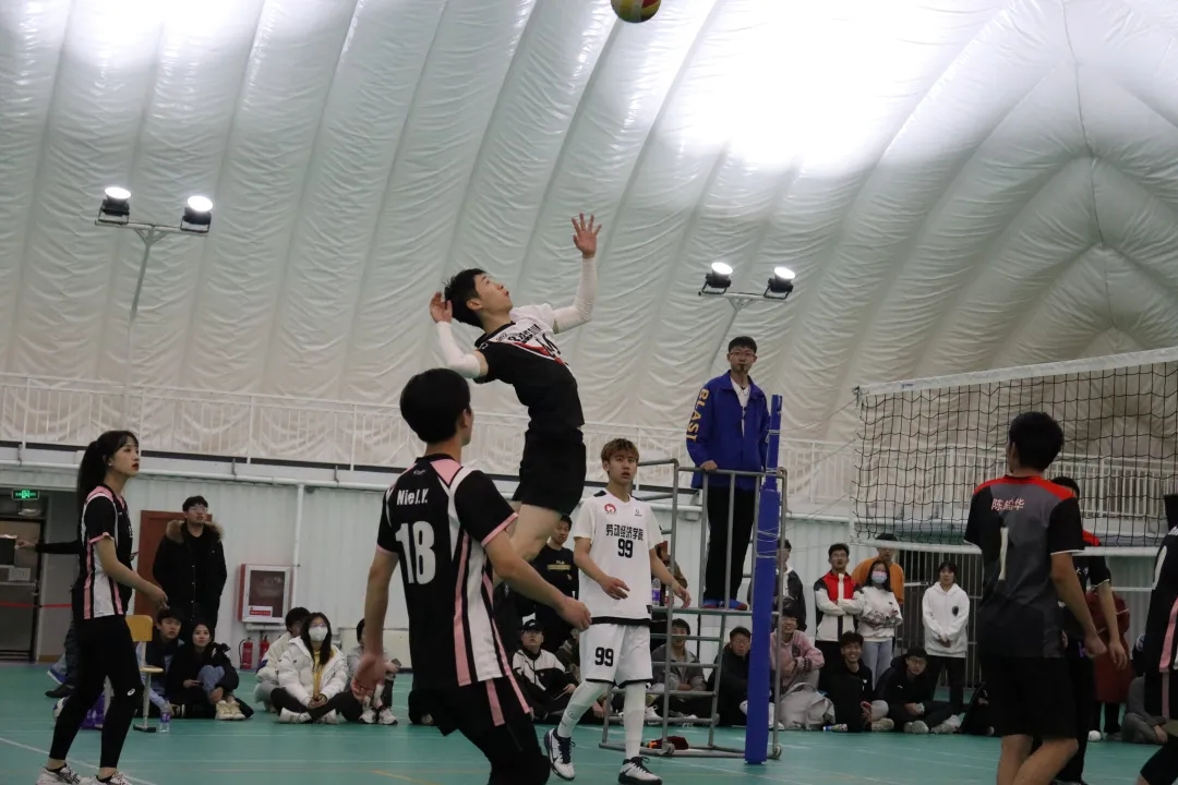 第二局双方易边再战,在场下观众的鼓舞以及场上队员之间相互的鼓励下,劳经一队的队员们保持稳定的心态,开局郑澤世与努尔扎提便成功拦下对方主攻的扣球,随后陈镭华与马毅怡发球连续得分,开局便打出了6-0的小高潮反超了管工队的加分优势,随后管工队继续展示他们的铁血防守,连连下地救球,但对方的失误也随着比赛的愈演愈烈逐渐增多,反观劳经一队则是频频拦网,稳定发挥接球扣球,最终以25:19的成绩扳回一局。