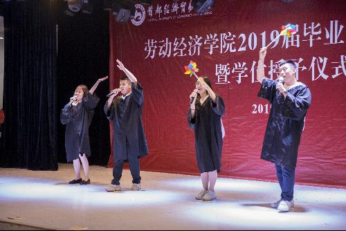 典礼上播放了《无奋斗·不青春》主题视频,围绕7名毕业生的优秀事迹,回顾了四年来在学院成长进步的点点滴滴、再现了劳经人孜孜以求、力行致远的精神风貌。