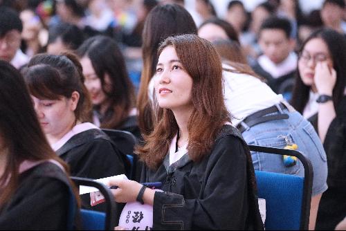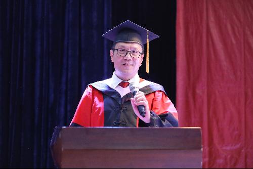 冯喜良院长在典礼上致辞,向所有2019届毕业生们表示祝贺,并感谢了四年来各位老师和家长的悉心培养。他向毕业生们提出了“人生的意义是什么?”“人生选择是什么?”和“如何追寻幸福的人生”三个问题,以“三个劲”来激励毕业生在未来的工作岗位中要爱岗敬业、砥砺前行:一是要“有闯劲”,要用于创新、敢于实践,不畏挫折,对待即将带来的新事物、新境遇抱有热情和乐观的心态;二是要“有韧劲”,要执着坚持、勇攀高峰,理性看待人生路上的成功与失败,做到“胜不骄 败不馁”;三是要“有傻劲”,对待工作要任劳任怨,在坚持中找到适合与否的答案。
