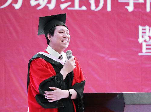 2015级人力资源管理国际班马跃代表全体毕业生发言,表达了对母校培养、恩师教诲、家人支持与同窗陪伴的感激之情。他回顾了四年的大学时光,从军训、“12·9”纪念活动聊到团体操、各类学术竞赛,从职业生涯规划聊到人生抉择。他坦言,遇见劳经是一种缘分、更是一种幸运和荣耀,在未来的生活、学习和工作中,将继续秉承校训精神,崇德尚能、经世济民,带着良师、亲友的挂念与支持,不忘初心、砥砺前行。