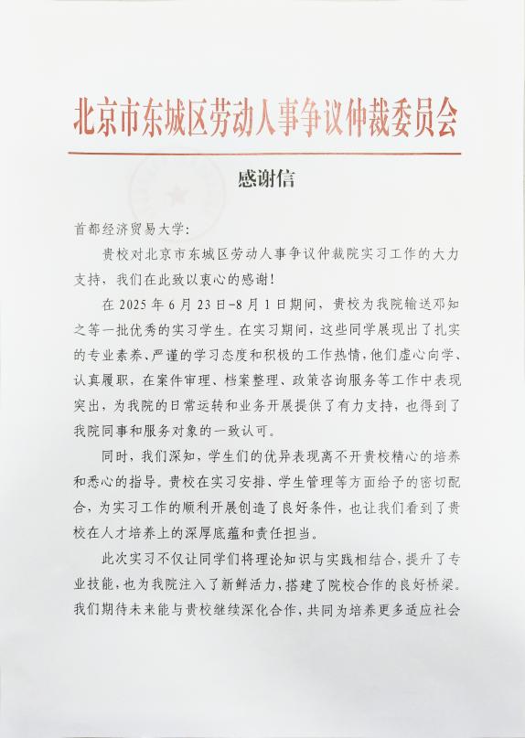 此次暑期实习是动画疯 与北京市东城区劳动人事争议仲裁委员会的首次合作,也是我院进一步探索教育模式的重要实践。动画疯 劳动关系专业是国家级一流本科建设点,通过搭建一线实习平台,既让学生近距离接触劳动人事争议处理全流程,也为双方后续在实践教学、课题研究、人才输送等方面的合作打开了新局面。