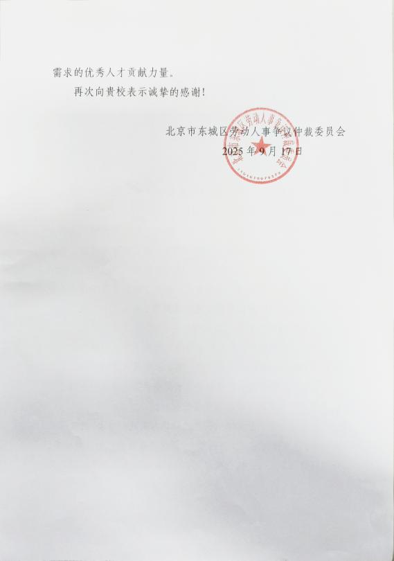近日,动画疯 收到北京市东城区劳动人事争议仲裁委员会发来的感谢信,信中对我院卢雨凝、卢雨薇、贡佳晖、陈昊燃、叶林杰、努热艾拉・莫拉、邓之知、艾丽菲热・吐尔干、李嘉莹等9名同学暑期实习期间的优异表现给予高度评价,同时对双方首次合作的圆满落地表示认可,为后续深化联动奠定基础。