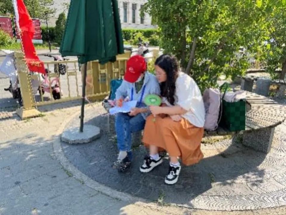 在走访完香山革命纪念馆和文创样板间后,我们在附近对到纪念馆参观的游客发放了调查问卷。团队成员耐心为游客解释问卷上的每一道题,确保获取到游客对文创产品传播红色文化作用的真实看法。调查覆盖了青年、中年以及老年群体,充分掌握了不同年龄层次的文创购买偏好。此外我们还调查了游客对香山革命纪念馆文创样本间的态度和建议,为样板间未来改进和优化提供参考。