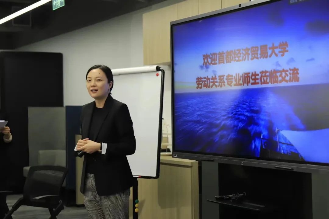 活动伊始,赉擘斯公司人力资源部经理赵丽老师对该单位的基本情况进行了介绍,并带领同学们参观了企业主要办公区域。赉擘斯公司作为成立了28年的战略劳动关系咨询企业,专注于企业战略劳动关系管理领域,在方法论、客户、人才三方面取得独特优势,帮助企业预防和处理危机员工关系,提升雇主品牌形象。