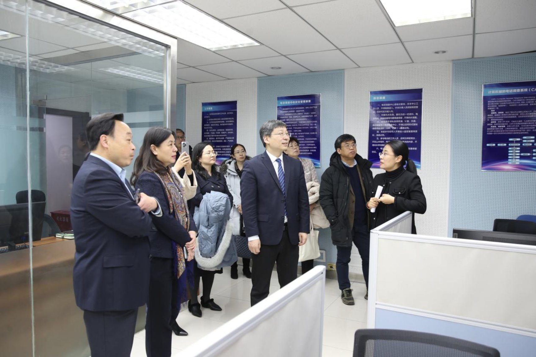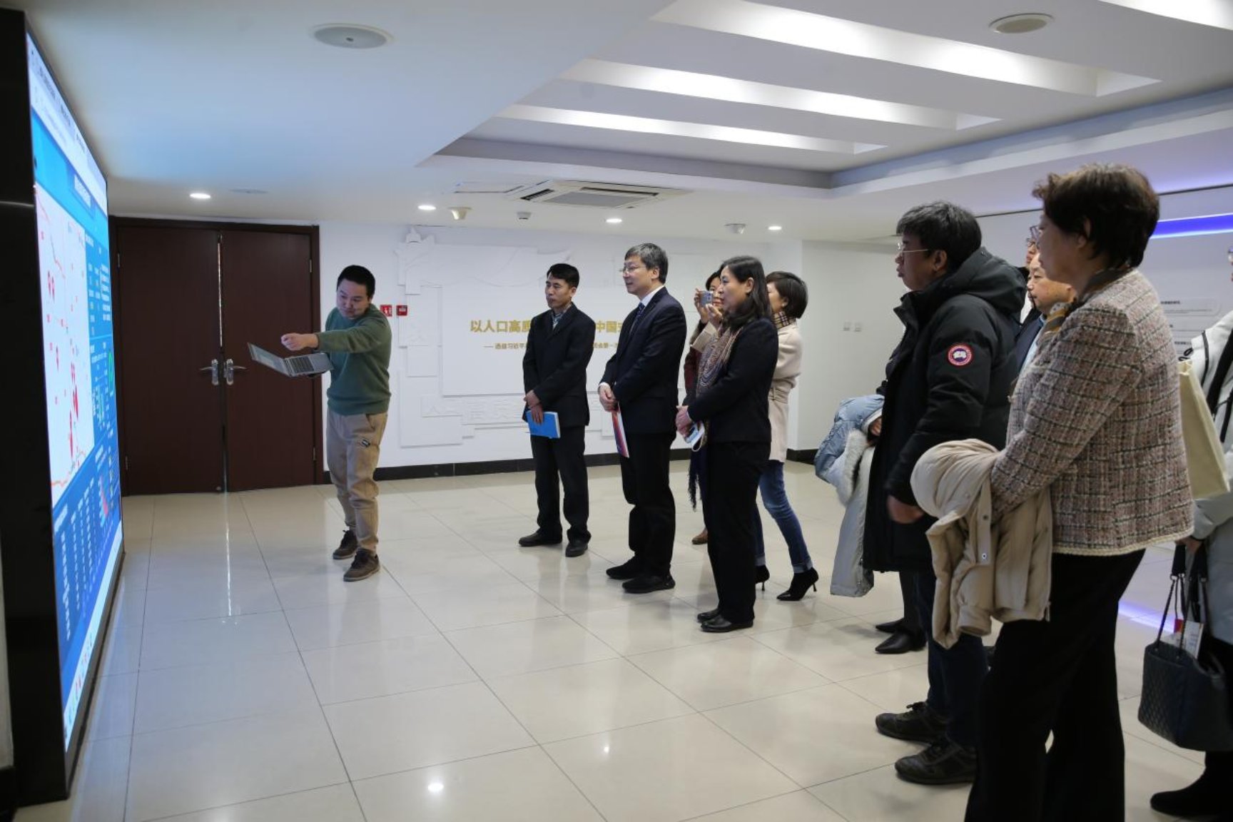 首经贸一行参观了中国人口与发展研究中心的图书馆、电话调查室、数据实验室,观看了电话调查系统的操作过程、Padis-int人口预测软件的应用演示以及老年人健康数据库的建设情况,深入了解当前中国乃至世界人口形势。中心工作人员展示了全国健康扶贫管理系统,并介绍了该系统在推动健康扶贫工作中发挥的关键作用。首经贸一行还参观了文化墙,感受中心独特的文化氛围与发展历程。