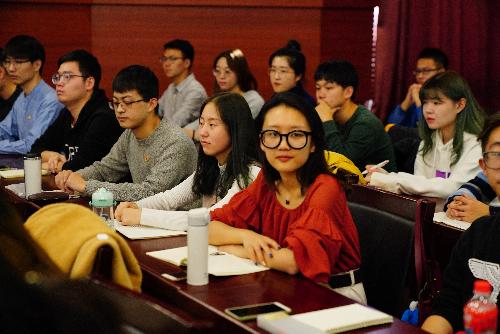 王明会从“如何理解‘初心’和‘使命’”“中国共产党的奋斗史”“劳经人的使命、担当”“现阶段学院发展存在的问题和改进方向”四个方面做了分享。