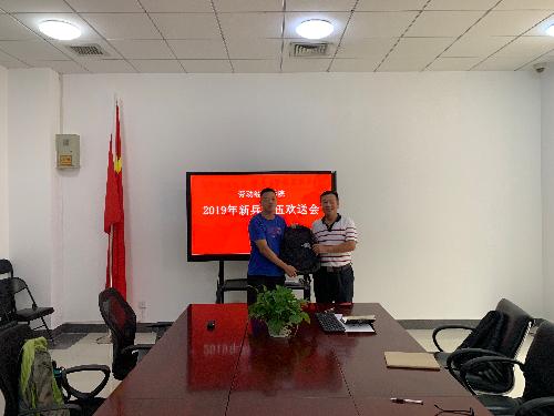 欢送会上,王明会向两位新兵赠送了礼物。“背包”寓意“背起行囊,逐梦启程”之意,希望两位新兵带着“劳经人”的期许、嘱托与关爱,在军营中积极进取、奋发有为、锤炼自我、建功立业。