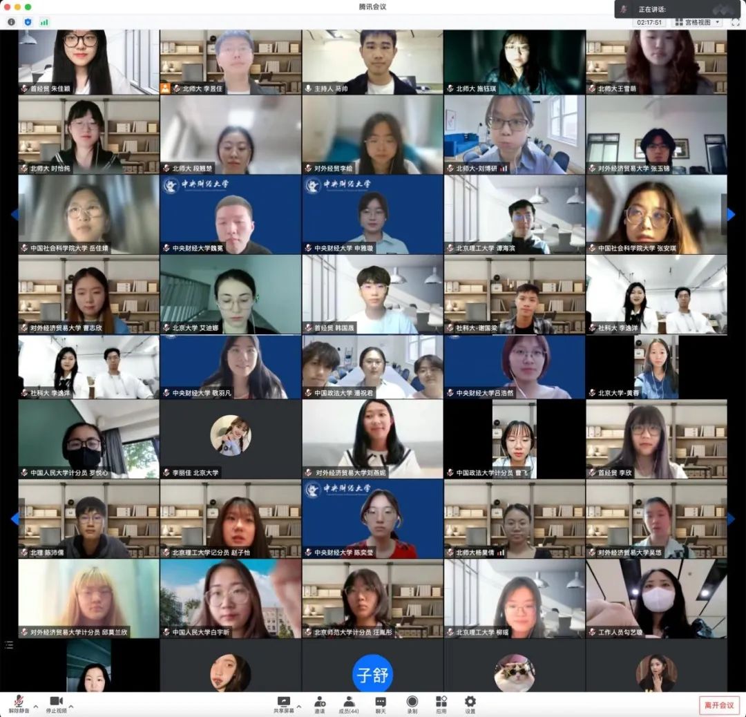 2022年5月21日,受北京师范大学政府管理学院邀请,我院分团委副书记韩国晟、学生会主席团成员李欣、分团委传媒中心主任朱佳颖参加了第七届“公事共办”首都高校团学工作交流会。会议以线上的方式进行,应邀参加的还有北京大学、北京理工大学、对外经济贸易大学、中央财经大学、中国人民大学、中国社会科学院大学、中国政法大学。