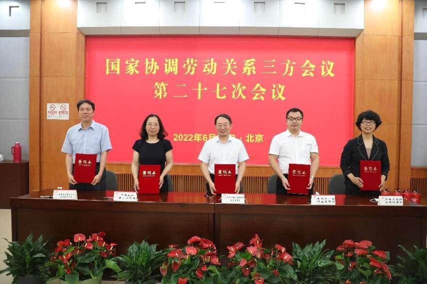 国家协调劳动关系三方会议第二十七次会议总结了2021年国家三方会议工作,部署了2022年工作任务,审议关于实施集体协商“稳就业促发展构和谐”行动计划的总结报告和国家协调劳动关系三方会议专家委员会组建等有关工作方案。人力资源社会保障部、全国总工会、中国企联、全国工商联有关负责同志出席会议并讲话。