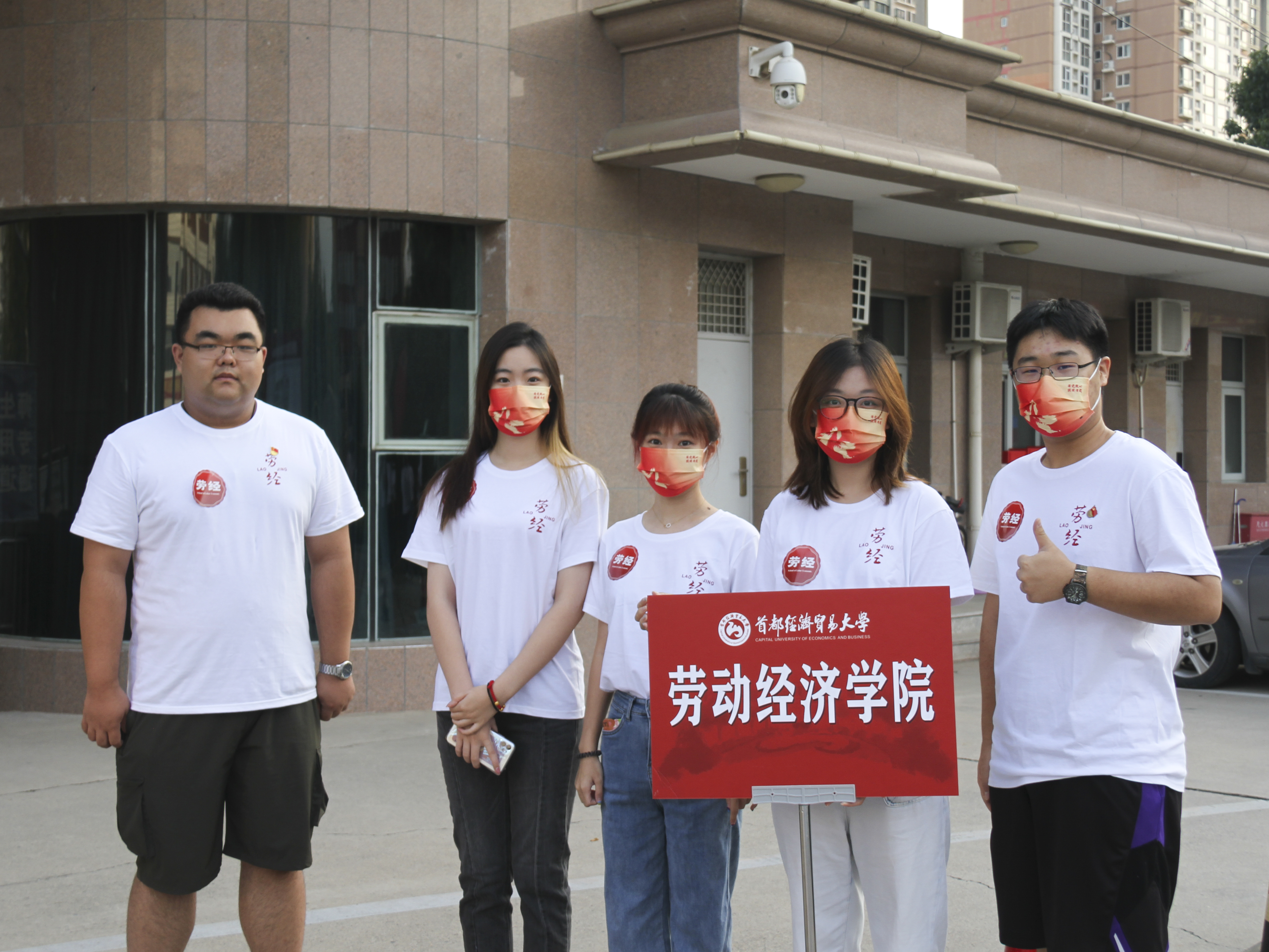 迎新日当天学院党员志愿者们身穿劳经院服,佩戴党徽、红袖标以及劳经定制口罩,积极承担党员责任,发扬先锋模范作用,认真做好引导服务工作。