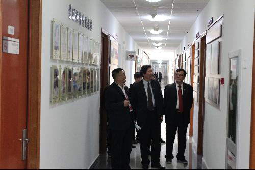 座谈会后,邓大松还查阅了学院本科教学工作审核评估相关材料,参观了学院“本科教学工作审核评估成果展”和宣传文化墙。