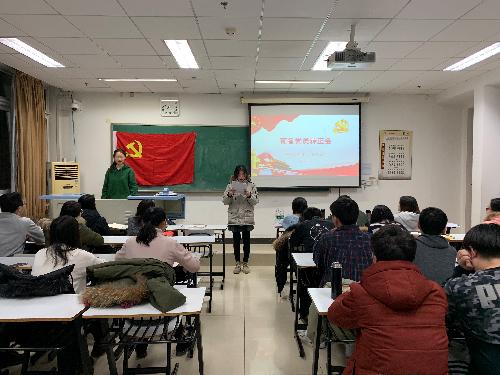 党支部紧抓思想政治学习,逐步推进建设学习型党支部,定期组织党员多样化学习,构建经常性党员教育体系。除了日常的学习强国之外,在理论学习上,自年初以来,支部开展了“中国共产党纪律处分条例”“宪法、监察法修正案学习”“中国共产党支部工作条例”“两会报告”“总书记在学校思政课教师座谈会上重要谈话”和“习近平在纪念五四运动一百周年上的讲话”等一系列学习活动。同时,支部组织党员观看了纪录片《榜样》和电影《厉害了我的国》《北平以北》《青年马克思》等并进行“课下百字谈”以提高党员的党性觉悟。