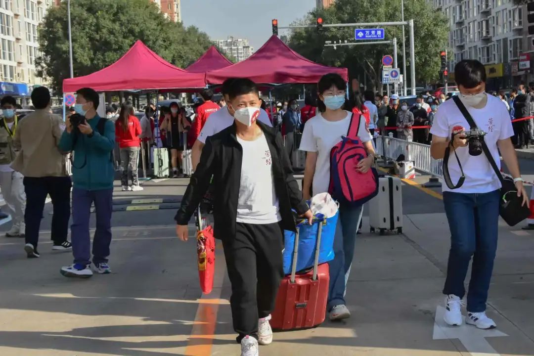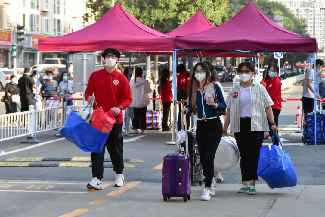 京内新生报到当天,因疫情防控要求,家长不能进入校园,学长学姐们作为志愿者积极帮助新生入校入住!他们身穿院服,佩戴劳经定制口罩,在各个岗位忙碌着。门岗志愿者负责接待引导,宿舍志愿者负责办理入住及搬运行李,报到处志愿者负责发放新生资料……志愿者们通过辛勤的付出,确保新生可以顺利顺畅的完成报到,让新同学步入校门就感受到家的温暖。