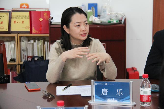 张瑞娟随后发言,她从专业定位、课程体系、实践教学等方面阐述了教研室的建设成果,并强调此次调研旨在通过经验互鉴,探索适应数字化转型的人力资源管理人才培养路径。