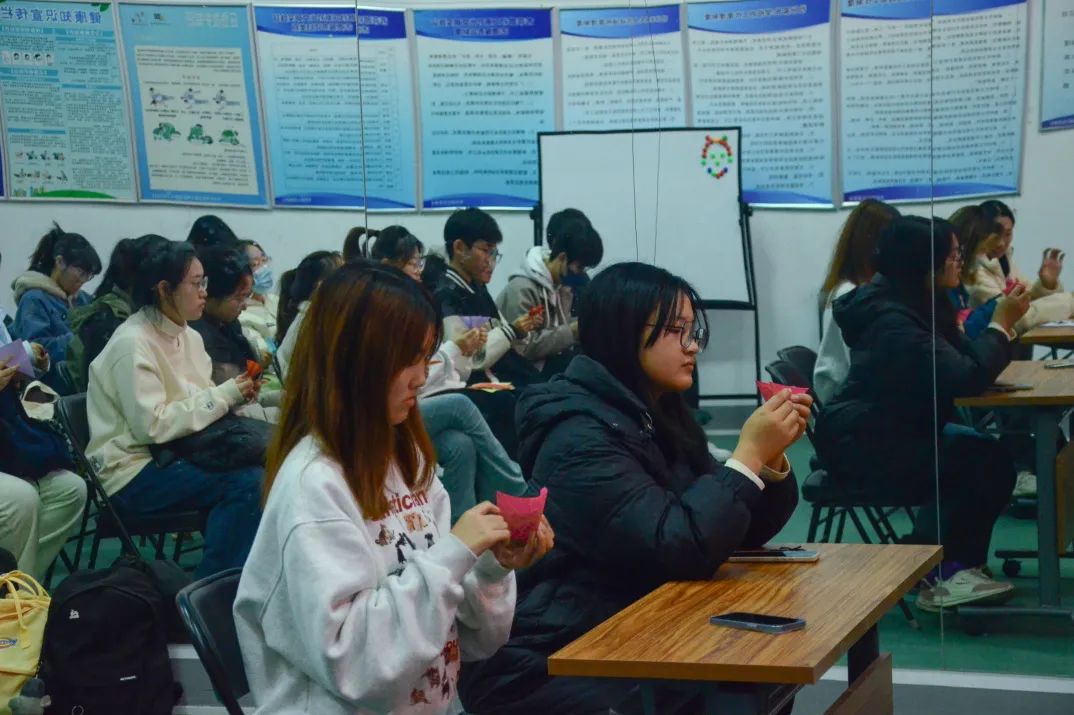 在最后的环节中,老师带领青少年们写下将自己的优点和不足,一步步折出自己的“多彩情绪花”。在制作过程中,大家互帮互助,在原有的基础上充分发挥自己的想象力,也借此再次认识自己、了解自己、接受自己。