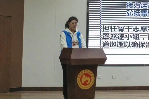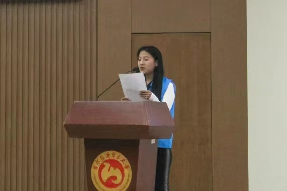孙乐代表学院在大会上致辞,她首先向所有辛勤付出、倾情奉献的劳经志愿者表示感谢,随后解释到“一日劳经人,一生劳经情”的起源,讲述了一代代劳经学子在志愿服务事业上的不懈努力与自我奉献精神,希望同学们将雷锋精神、劳经精神、志愿精神更好地融合在一起,在劳经积淀中发扬雷锋精神,在志愿服务中彰显劳经魅力,为社会建设贡献力量,以青年人的姿态书写新时代的雷锋精神。