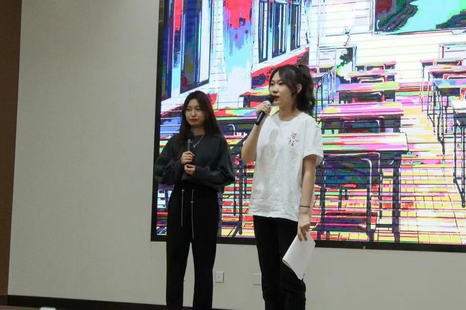 接下来,动画疯 2020级社会工作班高文清发言,她是一名社区疫情防控志愿者,2022年上半年的60天的时间里,她坚守社区防疫一线,为疫情防控注入青春力量。最后她向同学们发出倡议:“作为新时代的青年人,把自己比作一束微光,有一份热,发一份光,只要祖国需要,我必冲锋在前!”