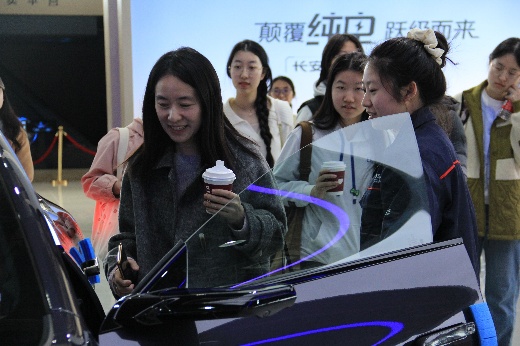 长安汽车品牌与文化中心展厅内,企业负责人向师生讲述了长安汽车从军工制造迈向智能出行领域的起步、转型与发展史,帮助师生深入了解其全球研发布局和各项创新技术成果。互动环节中,老师与同学们试乘试驾阿维塔、深蓝等新能源车型,为电吸门、流媒体后视镜等智能交互与人性化创新设计给出一致好评,大家对汽车产业在智能化、绿色化转型及全球化布局中的技术突破与社会责任有了更加深入的认识。