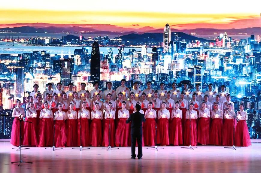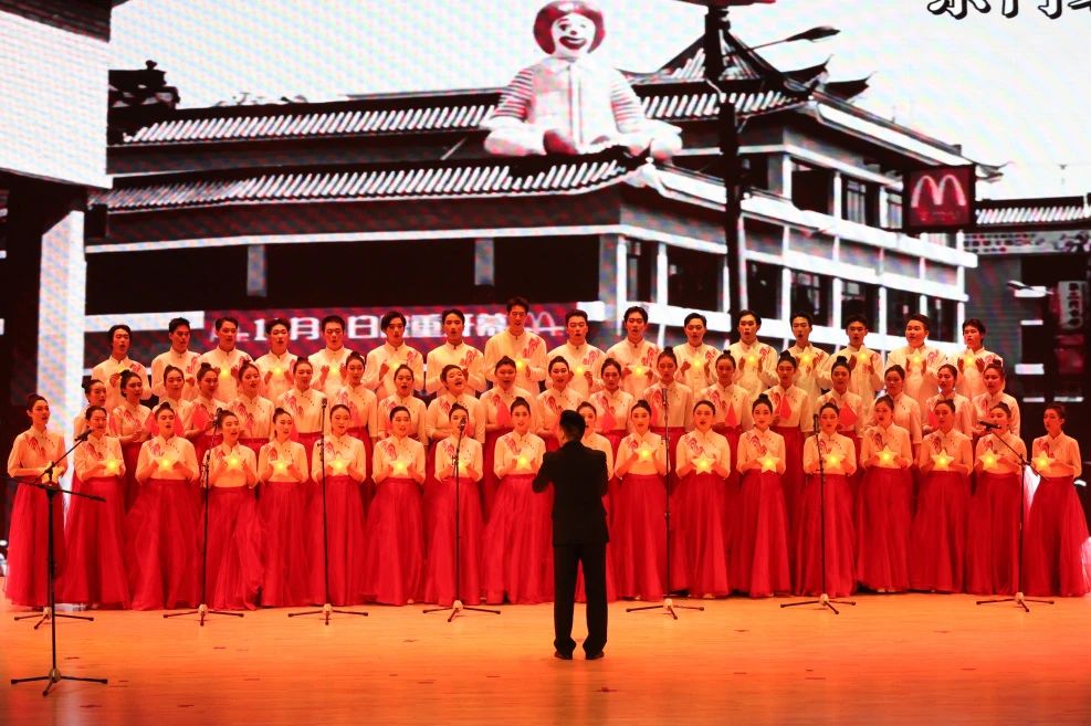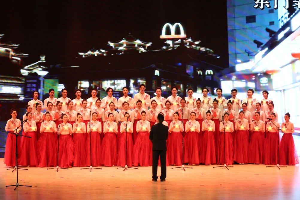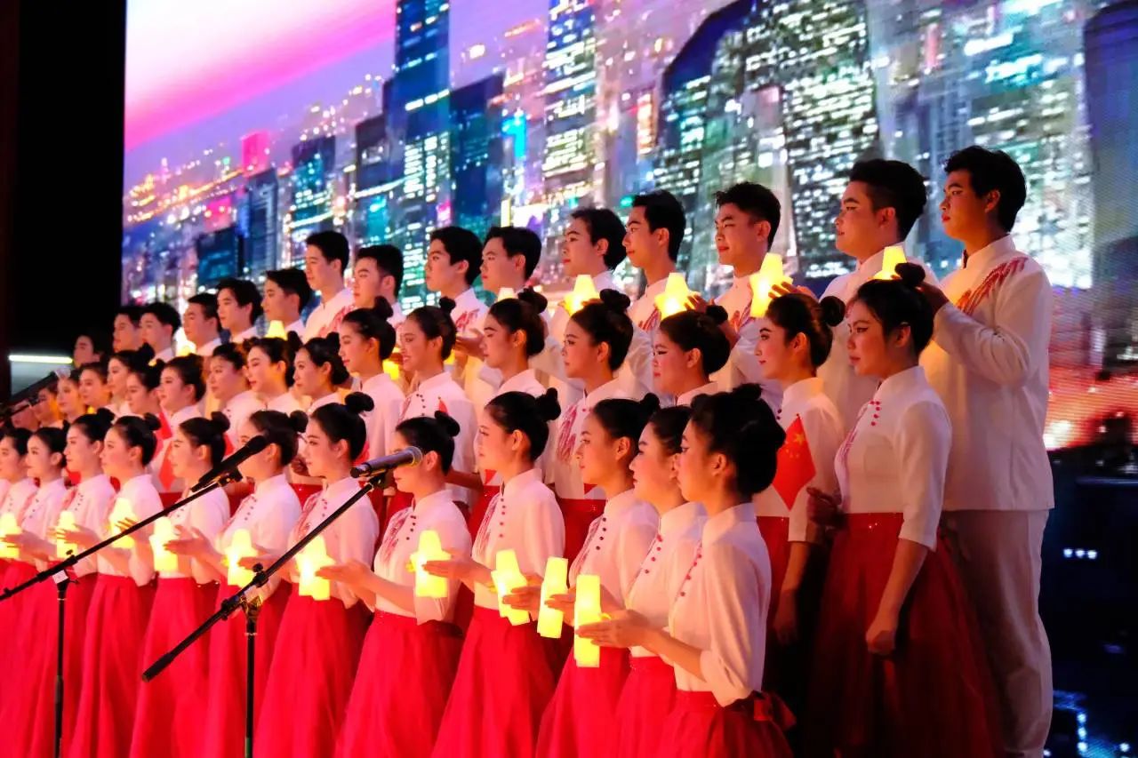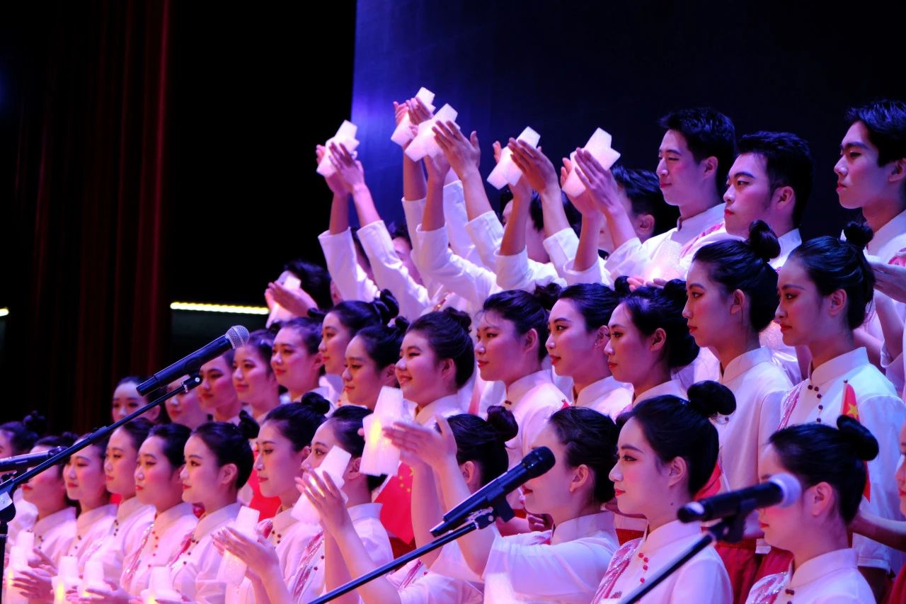 合唱旋律大气恢弘,歌曲渐入高潮。“灯火里的中国青春婀娜,灯火里的中国胸怀辽阔;灯火漫卷的万里山河,初心换回了百年承诺。”和谐动人的曲调扣人心弦,一段难忘的奋进故事正在娓娓道来。百年风雨兼程换来如今的岁月静好,灯火里的中国,正是中国共产党带领中国人民实现伟大梦想的生动缩影。中国共产党初心不改,以绵延灯火传递温暖与光亮,开启了灿烂辉煌的新时代。嘹亮的歌声唱出劳经学子心中激荡的中国梦,是对美好未来的坚定信念。