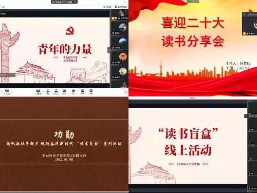 喜迎二十大,永远跟党走,奋进新征程。在建团100周年之际,为提升团员青年的思想水平,展现基层团支部的精神风貌,鼓励团员青年学习习近平总书记在人民大学考察时的重要讲话精神,体会总书记对新时代中国青年寄予的殷切期望和提出的明确要求,动画疯 分团委组织“扬帆起航争朝夕,砥砺奋进新时代”读书盲盒主题团日活动,为各支部寄送红色学习书籍相互传阅分享。各班团支书带领团员青年们在线上热情讨论,感悟青年责任,树立远大理想,坚定跟党走。