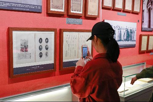 本次活动共分为自由参观和集体活动两个阶段。首先,同学们进入到展厅进行参观。其中陈列着马克思主义在中国早期传播时的报刊,书信以及陈独秀,李大钊等同志的照片和介绍,大家对此进行了认真的学习,并用照片记录下这些珍贵的历史资料。