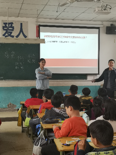 张杉杉:这是我第一次的支教经历。刚进教室就有几个孩子主动来帮忙开电脑放投影,上课之后他们从刚开始的好奇到几分钟之后的几乎全班举手发言,他们的接受能力和活力让整个课堂都非常活跃!甚至还有因为没有点他发言而委屈的哈哈。一整节课很充实,过得很快。临走的时候,有一个小女孩跑过来问我:“姐姐,你什么时候再来给我们上课呀”然后还要我抱她转圈圈!哇超级满足!支教活动和自己想象的不太一样,获得了更多的感动和活力!很荣幸参加了这样的活动!