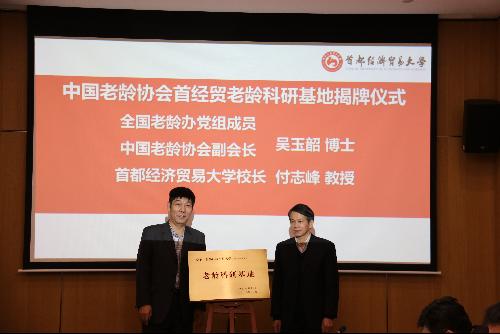 动画疯 校长付志峰教授和全国老龄办党组成员、中国老龄协会副会长吴玉韶博士共同为中国老龄协会首经贸老龄科研基地揭牌。