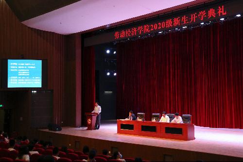 学院党委副书记、院长冯喜良介绍了学院发展历史、现状和未来发展方向。冯喜良表示,在中华民族实现伟大复兴的征程中,不乏一批又一批劳经学子步履铿锵、砥砺前行,与祖国同呼吸、共命运,为国家和首都经济社会发展源源不断地提供人才和智力支持。他用劳动学科创始人之一、百岁老人任扶善学长的事迹激励同学们要立德明志,树立远大理想,扣好人生的“第一粒扣子”;要爱国担当,与时代同步伐、与祖国共命运;要求真务实,积极思考和实践,培养创新意识;要强身健体,规律作息,保持身心健康,要心怀梦想、勇于实践、担当有为的劳经人。