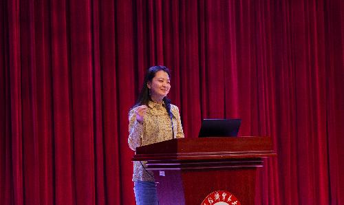 学院人力资源开发与人才发展系教师唐乐作为教师代表欢迎新生们的到来。她提到“大学和高中相比最重要的任务就是要开始‘思考人生’,逐渐成为一个拥有完整且独立人格的社会个体”。她希望每一位毕业生在大学时光中都能敢于尝试、勇于试错,在经历挫折和磨难后都能理解公平和正义的价值、领悟忠诚和信任的价值,都能够明白友谊的珍贵、明白懂得倾听的重要意义,能够学会同情和怜悯,学会用感恩的心态面对周遭。