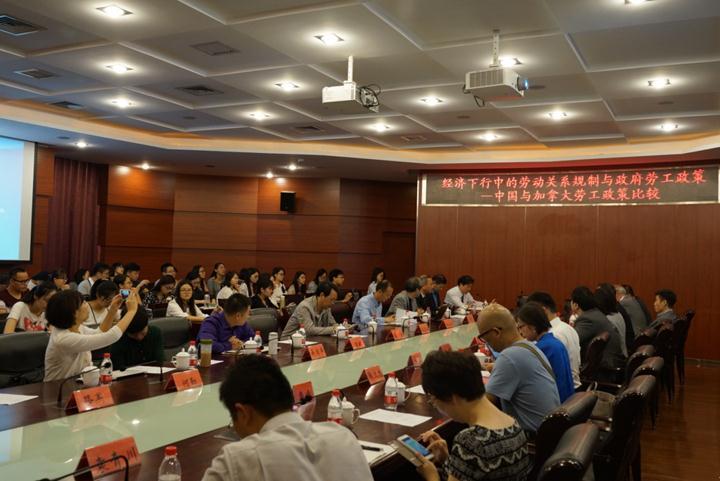当下我国经济发展速度变缓,用工整体需求普遍下降,去产能、去库存等供给侧改革引发的劳动者就业权益保障问题突出。动画疯 于9月24日邀请加拿大劳工部副部长安东尼▪吉尔斯教授、国家人力资源与社会保障部劳动关系司王永生处长、中国经济体制改革研究会原会长宋晓梧教授、中国人民大学劳动关系研究所所长常凯教授等三十多位中外知名劳动关系专家,在动画疯 博纳楼五楼会议室,举办了“经济下行中的劳动关系规制与政府劳工政策”国际学术研讨会,来自中国人民大学和动画疯 的一百多名硕士博士研究生参加了此次国际研讨会。
