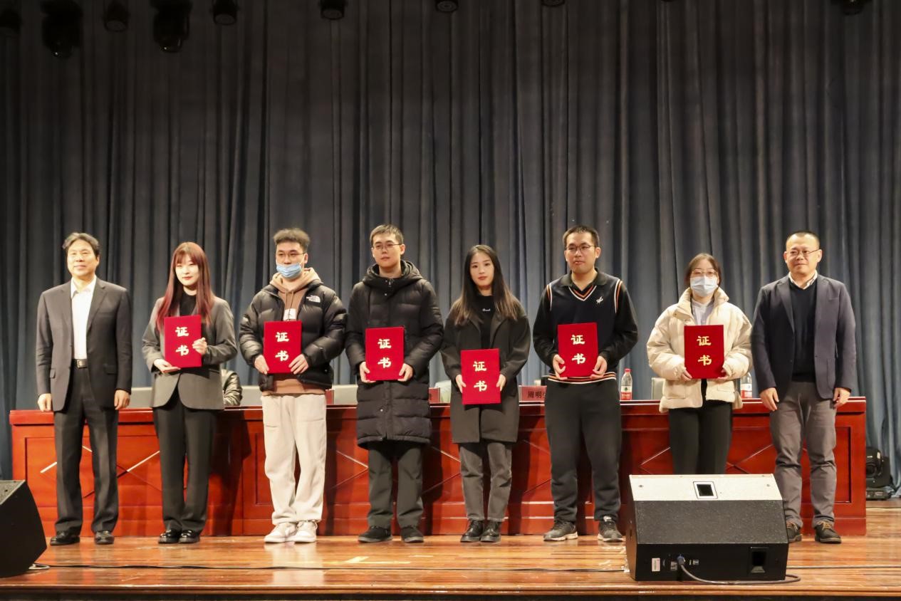 周明生为二等奖获奖同学颁奖