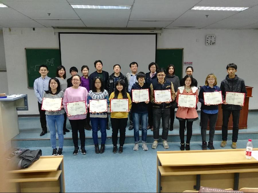 最后,2013级人实班肖昕仪代表获奖同学发言。她谈到,学习外语可以从明确的目标、适合的方法和坚持到底的恒心三方面入手,同时要怀有“尽最大的努力去做一件事”的态度。此外,她认为,语言的学习存在短暂目标,却从来不存在尽头。她祝愿同学们都能够凭借自己的能力和意志在学习语言的道路上体会到其带来的魅力和精彩。
