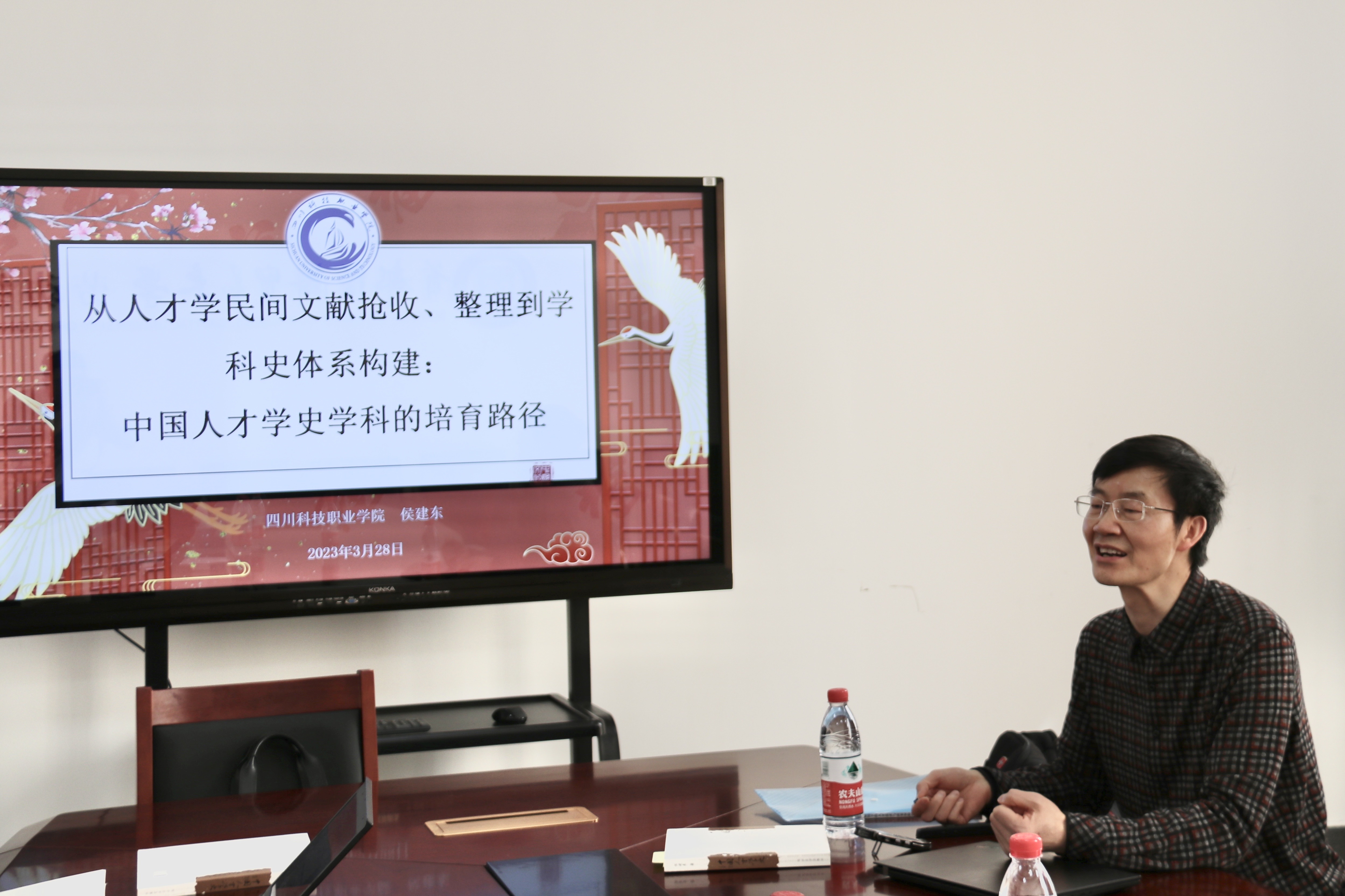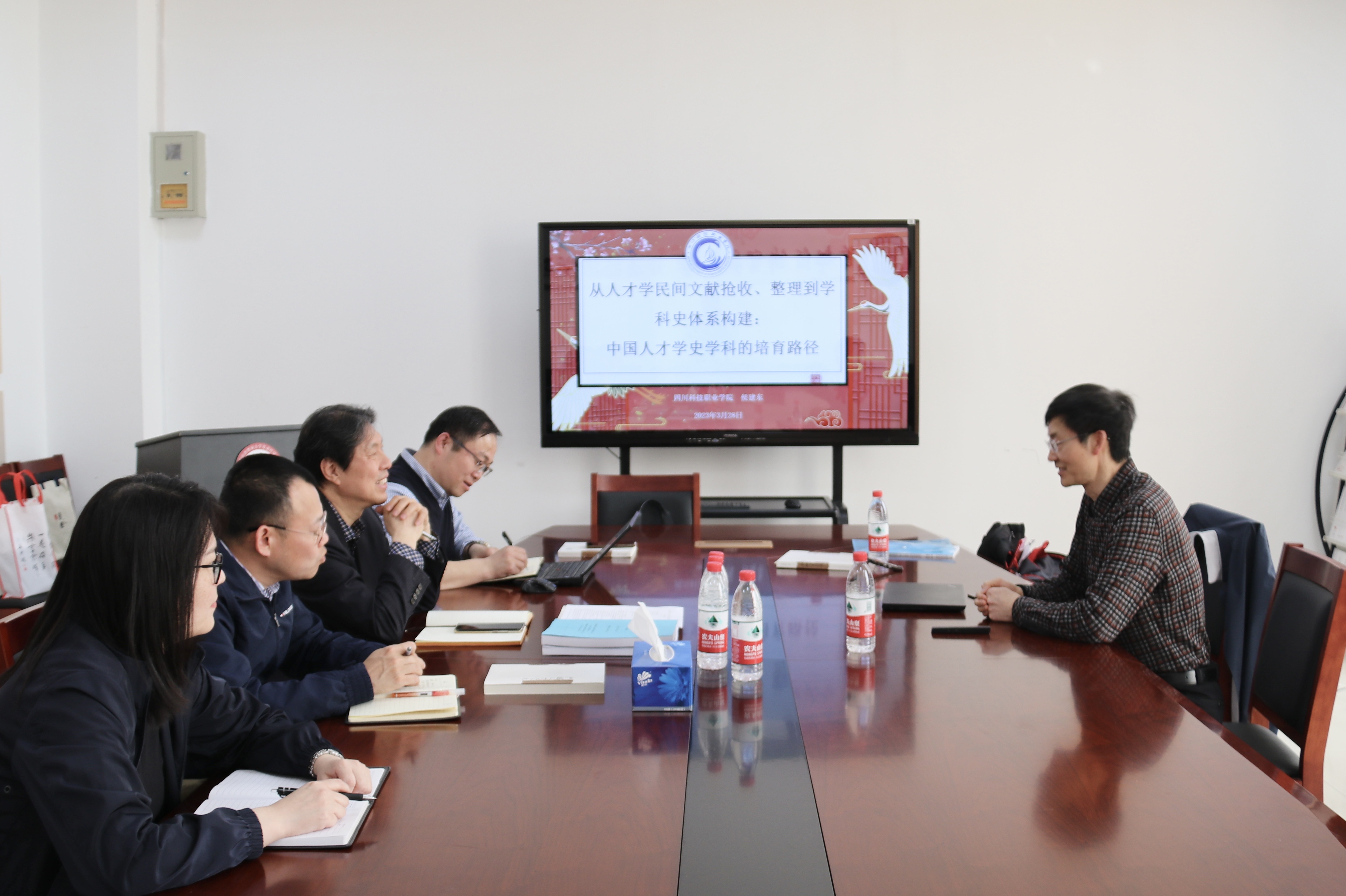 3月28日,中国人才研究会常务理事、四川科技职业学院教授侯建东携人才学著作《中国人才学史》来动画疯 进行中国人才学史学科的培育路径专题分享。动画疯 党委书记冯博,党委副书记、院长冯喜良,人才学系系主任苗仁涛,人才学系党支部书记陈书洁出席本次活动。