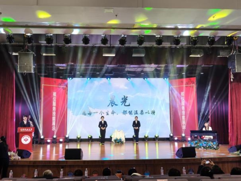 在生命文化节教学成果展示环节,来自民政职业大学生命文化学院的同学们通过诗歌朗诵、礼仪展示及技能演绎等形式,生动呈现了“尊重生命、恪守职责、传承匠心”的职业风貌。