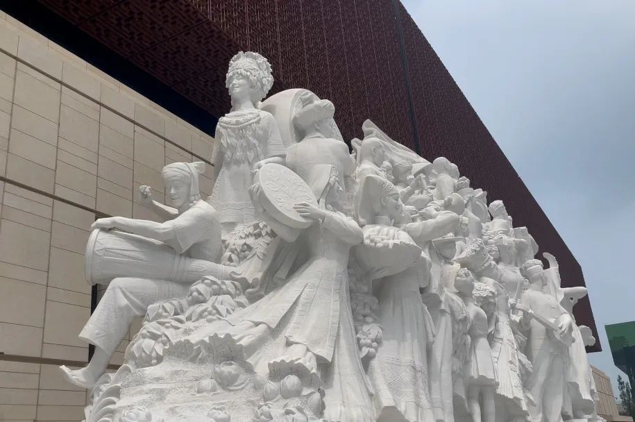 《伟业》主题雕塑共有65个人物形象,涵盖不同群体、不同职业。雕塑前端正面人物形象是党员干部、大国工匠、农民、军人代表、知识分子、企业家和宇航员等,中间通过“火炬”和“旗帜”的形象进行连接和升华,反映中国共产党员坚定不移跟党走,团结带领全国各族人民,发奋图强、艰苦奋斗,取得一个又一个举世瞩目的伟业。