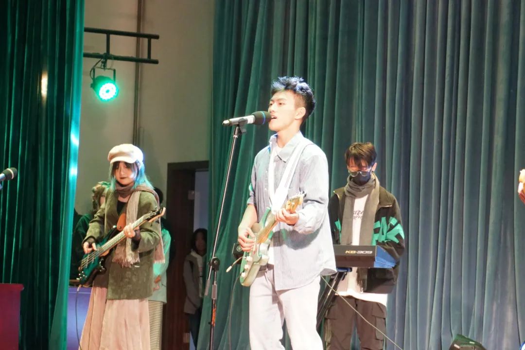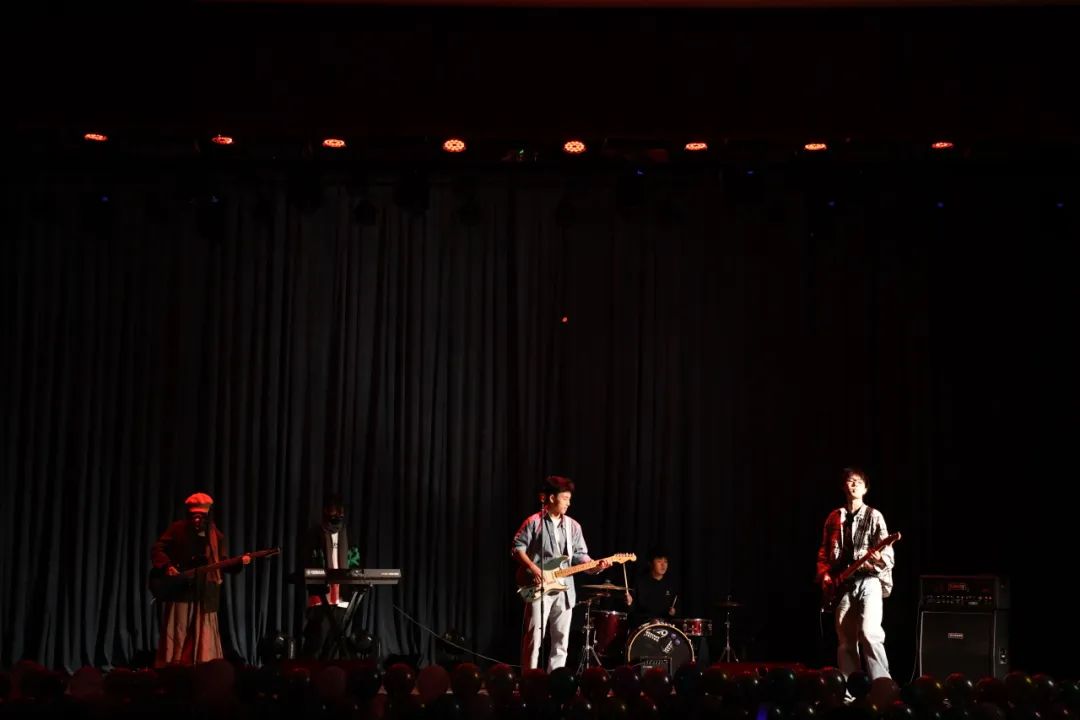 台下欢呼声未落,动人心魄的鼓点紧随其后,由现代音乐社带来的热场音乐《你要跳舞吗》为晚会激情开幕。歌手富有感染力的嗓音和直入人心的伴奏使现场气氛迅速升温,将台下的目光聚拢在舞台之上。