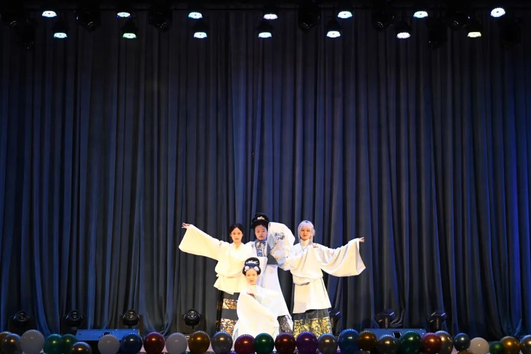 魔术团带来表演《皦玉朱樱》。一个个小圆球在魔术师的手中游走自如,时隐时现,似皦玉般莹白的小球随双手回旋起舞。转瞬间,小球从莹白变为朱樱色,宛如玛瑙般惹人注目,引起阵阵惊叹。又一瞬,朱樱变回皦玉,仿佛神仙作法,引得同学们流连瞩目。