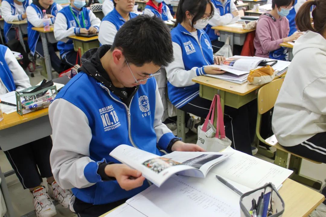北京市第十八中高三年级主任甄兆敏、高三四班班主任井雪,动画疯 分团委副书记(主持工作)、兼职辅导员韩国晟,22级劳经班团支部书记刘芳利、文体委员战墨菡及高三四班全体同学参与活动。