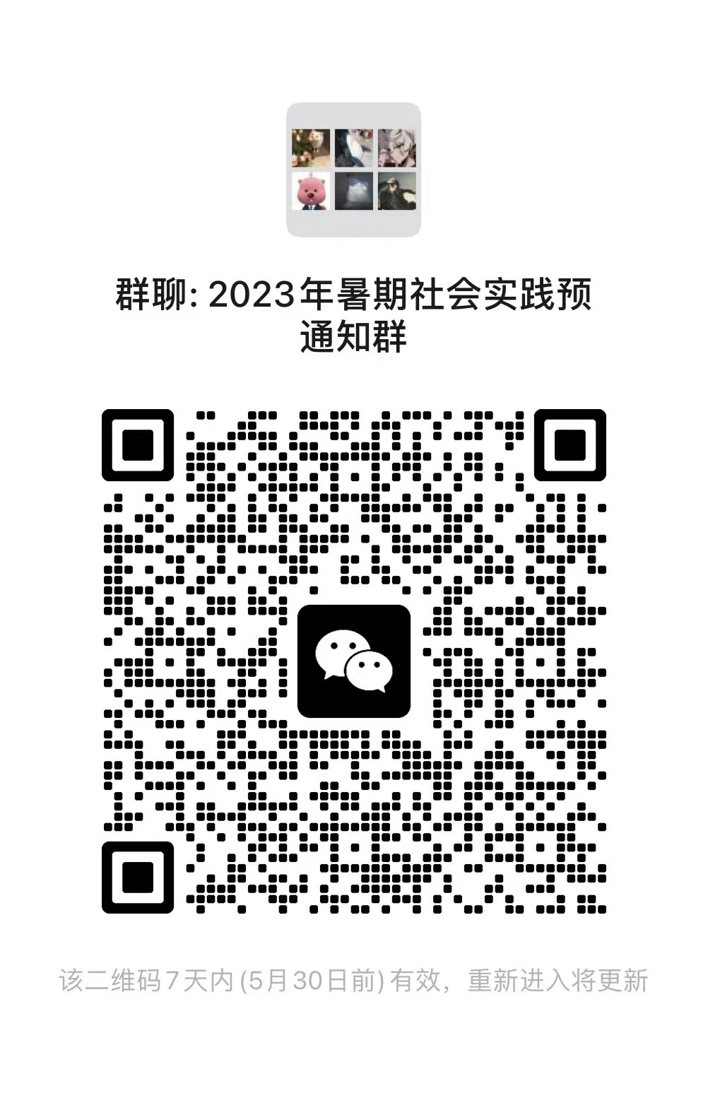 请有意向申报的学生扫描二维码进入学院2023年暑期社会实践预通知群(附件2)。